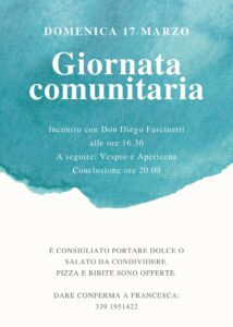 Per Domenica 17/03/2024 il nostro Consiglio Pastorale propone un’altra giornata per la nostra comunità.